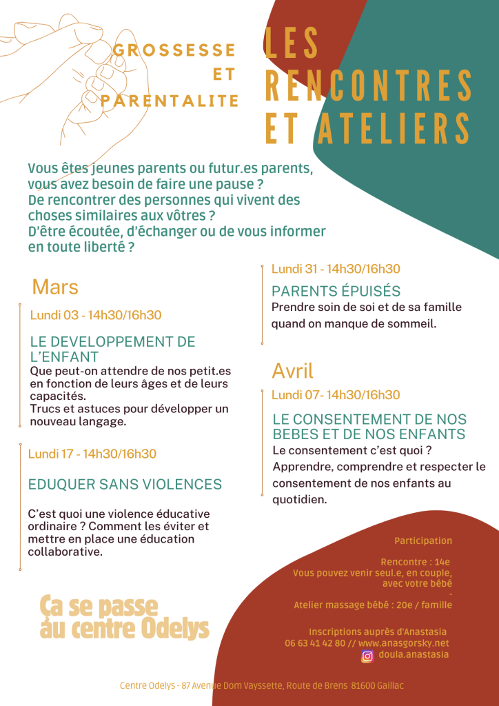 Cycle de rencontres parentalité – maternité au Centre Odelys à Gaillac Mars/Avril 2025.